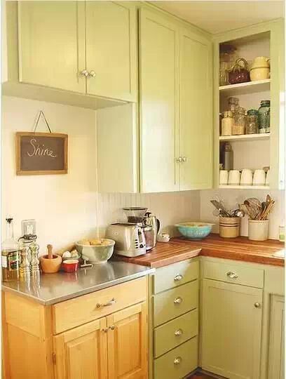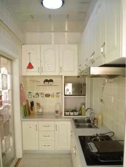 如果厨房特别小的话首先看的是整个厨房的结构,一般常规的做法是改门,把原来的木门改成滑门或者折叠门,这样门后面开门部分的空间就空出来了。还可以挖墙法,选择靠门的墙边向上下挖出合适的空间来做储物空间。再就是多利用上墙空间做吊柜,还有转角部分做隔架……其实小空间只要利用的好在加上巧妙的设计一样可以事半功倍倒到超乎想象的效果。