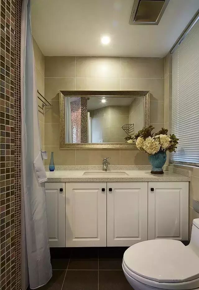 马赛克墙面与暖色调的墙面组合,鲜明的色彩对比带来视觉上的冲击,让淋浴空间显得宽敞明亮。