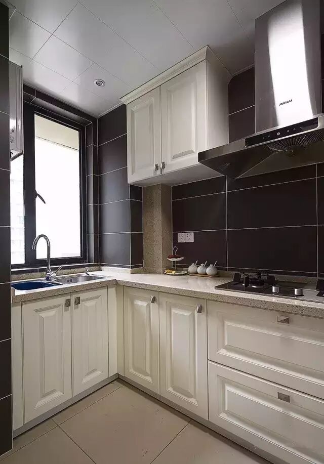 咖色瓷砖配白色厨柜,没有深色带来的沉重感,反而很雅致。