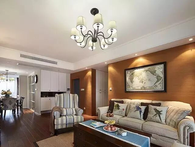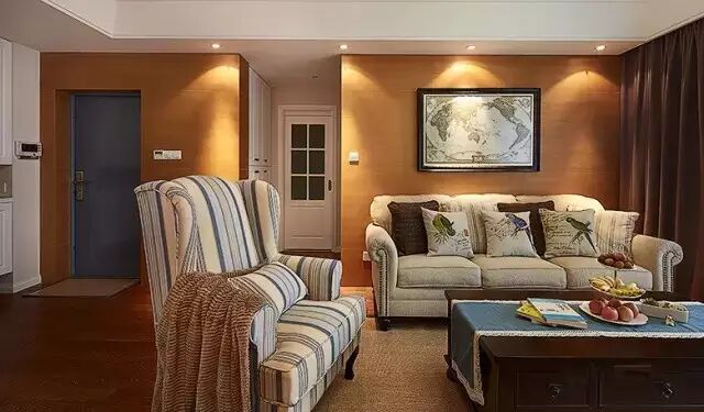 组合抱枕将咖啡色完美融合在细节处,铆钉亦或是深色木茶几及条纹单椅,无不创造出和谐自然的视觉平衡感。