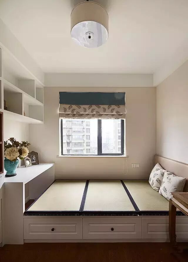 客房做成了榻榻米+书桌,平时可以当做书房兼储物间,来客人时妥妥变身客房,简直不能更实用。
