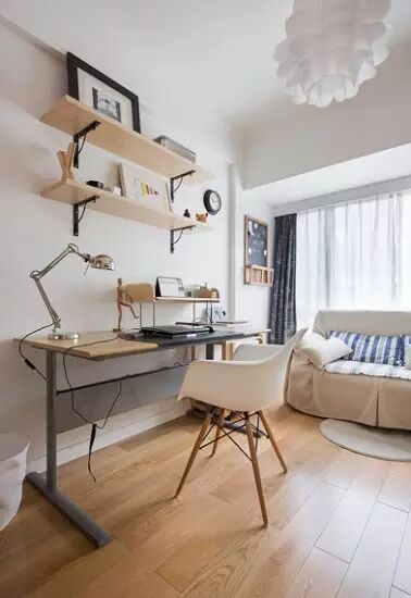 这样的一个书房,既能满足学习工作的机能,同时也能满足大家对于书房休闲空间的一种需求。