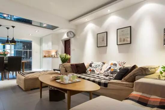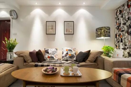 客厅展现了简洁爽朗的空间布局、明亮恬静的色彩搭配和舒适大方的家居格调。