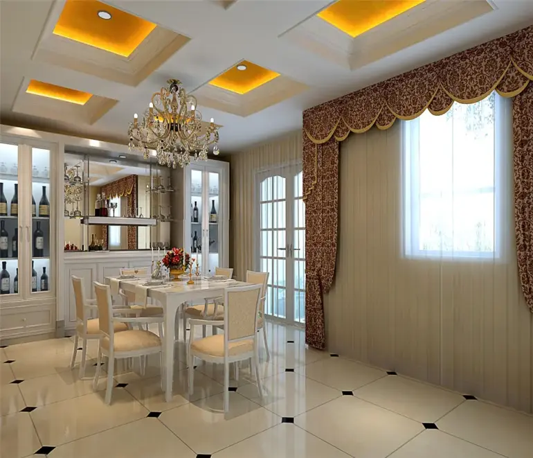 适用房间:多用于装有中央空调的户型,由于中央空调厚度多在35公分摆布,迭级吊顶能够添加层次感,对房高请求较高,通常请求要在2.7米以上。
