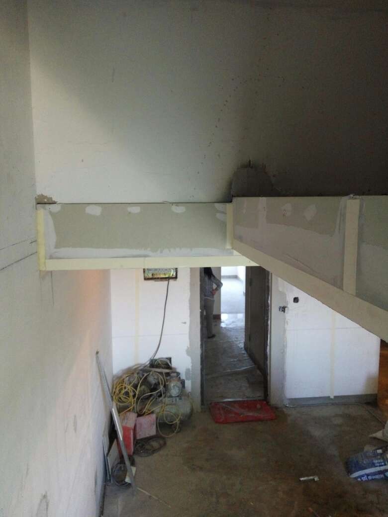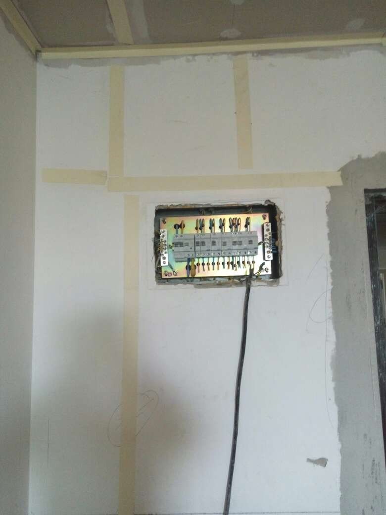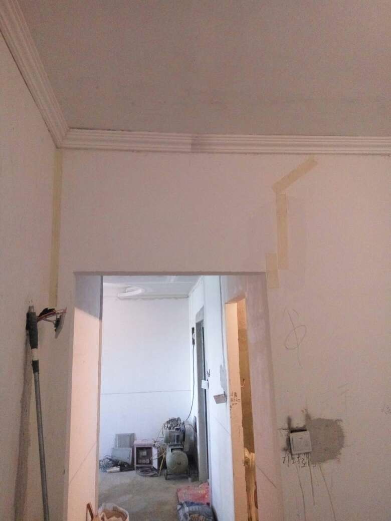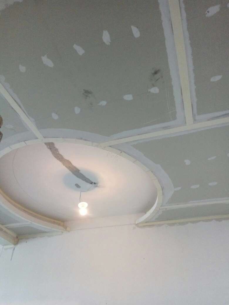 今日吊顶验收,检查房间各部位吊顶高度,封板,自攻钉等各项施工符合工艺要求,材料为可耐福龙骨及可耐福石膏板。另房间局部做抗裂处理,厨卫轻体砖包下水管道,施工正常,验收通过。